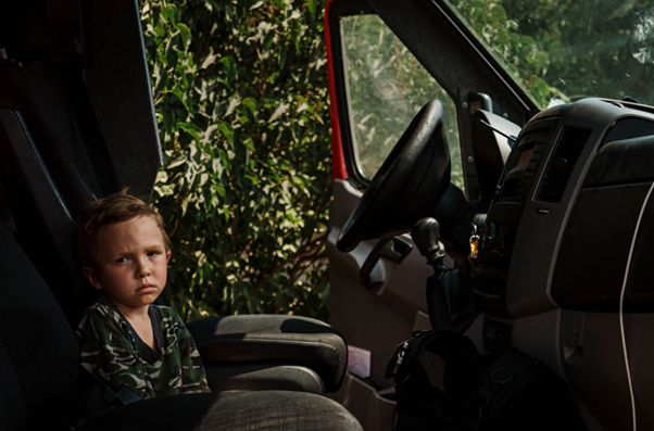 Хлопчик у машині волонтерів під час евакуації з Лисичанська. Marcus Yam