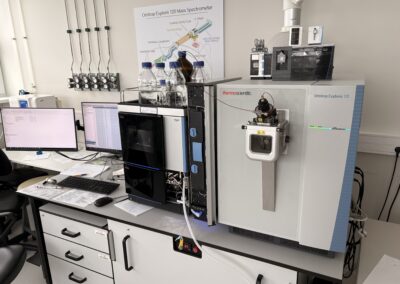 Поки що такої можливості не було, однак нам обіцяли кілька лабораторних робіт із використанням сучасного рідинного хроматографа та мас-спектрометра Thermo Fisher Scientific Orbitrap Exploris 120 (LC-MS).